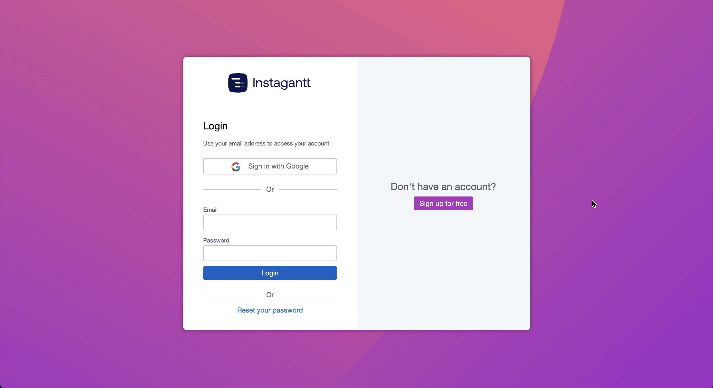Once your Asana password has been updated, you can log in to Instagantt for Asana using the new credentials.